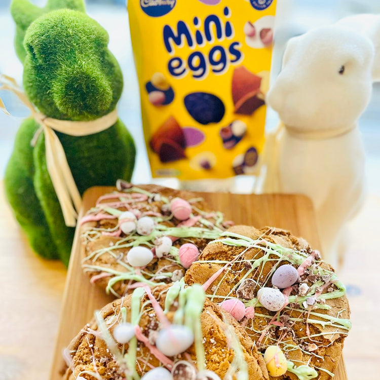 Our stuffed cookies are thick, bakery-style giants, crisp on the outside, soft and gooey in the centre, and packed full of seriously indulgent fillings. We’re talking whole Creme Eggs, caramel eggs, and layers of melted chocolate hidden inside every bite.