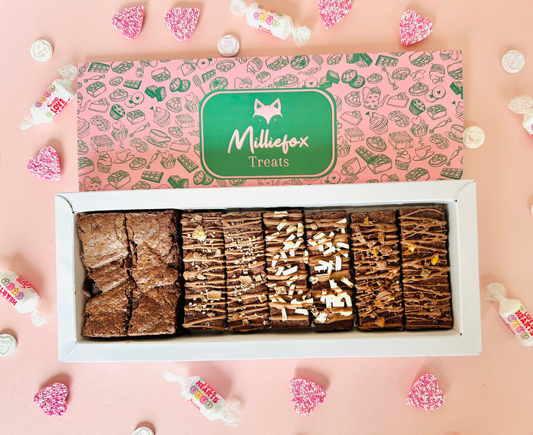 8 deep, delicious slices in every box! Delicious as a plain classic brownie or filled with flavours of your choice.